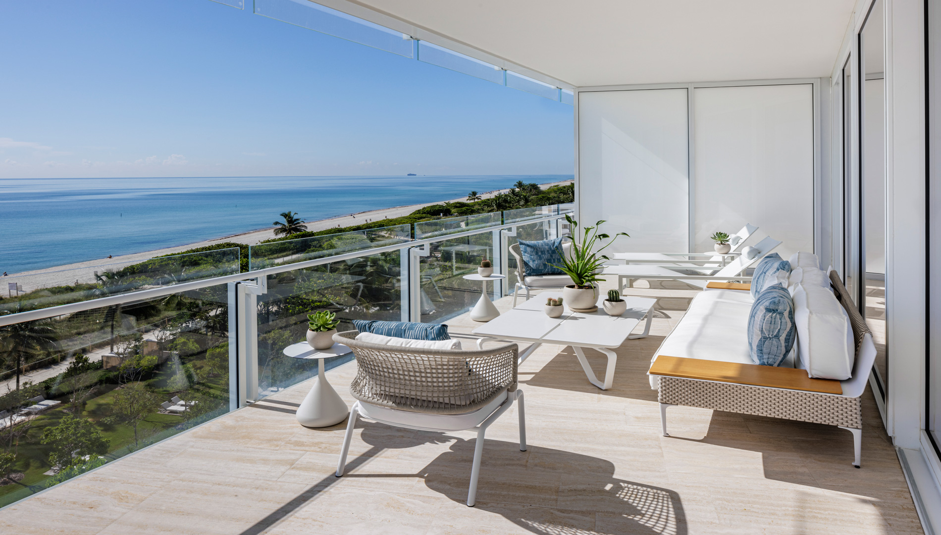 The ONLY residence at The Four Seasons Surf Club South Tower available! Premier oceanfront living! Coveted 3BD3.5BA + office flow-through residence by Pritzker Prize award-winning architects Richard Meier Kobi Karp. Interiors by renowned designer Deborah Wecselman! Endless unobstructed Eastern ocean sunrise views downtown Miami skyline Western sunset views. Private elevator foyer entry, two 12ft wide oversized terraces waccess from all rooms, Boffi kitchen wisland, Wolf induction cooktopMeile appliances Sub-Zero wine cooler, 2 grand living spaces, custom bar wlighted alabaster countertop, Poliform closets, primary wdouble bath, high-end finishes, seamless indooroutdoor living. White-Glove services 9 acres of pristine beachfront waward winning landscaping by Fernando Wong.